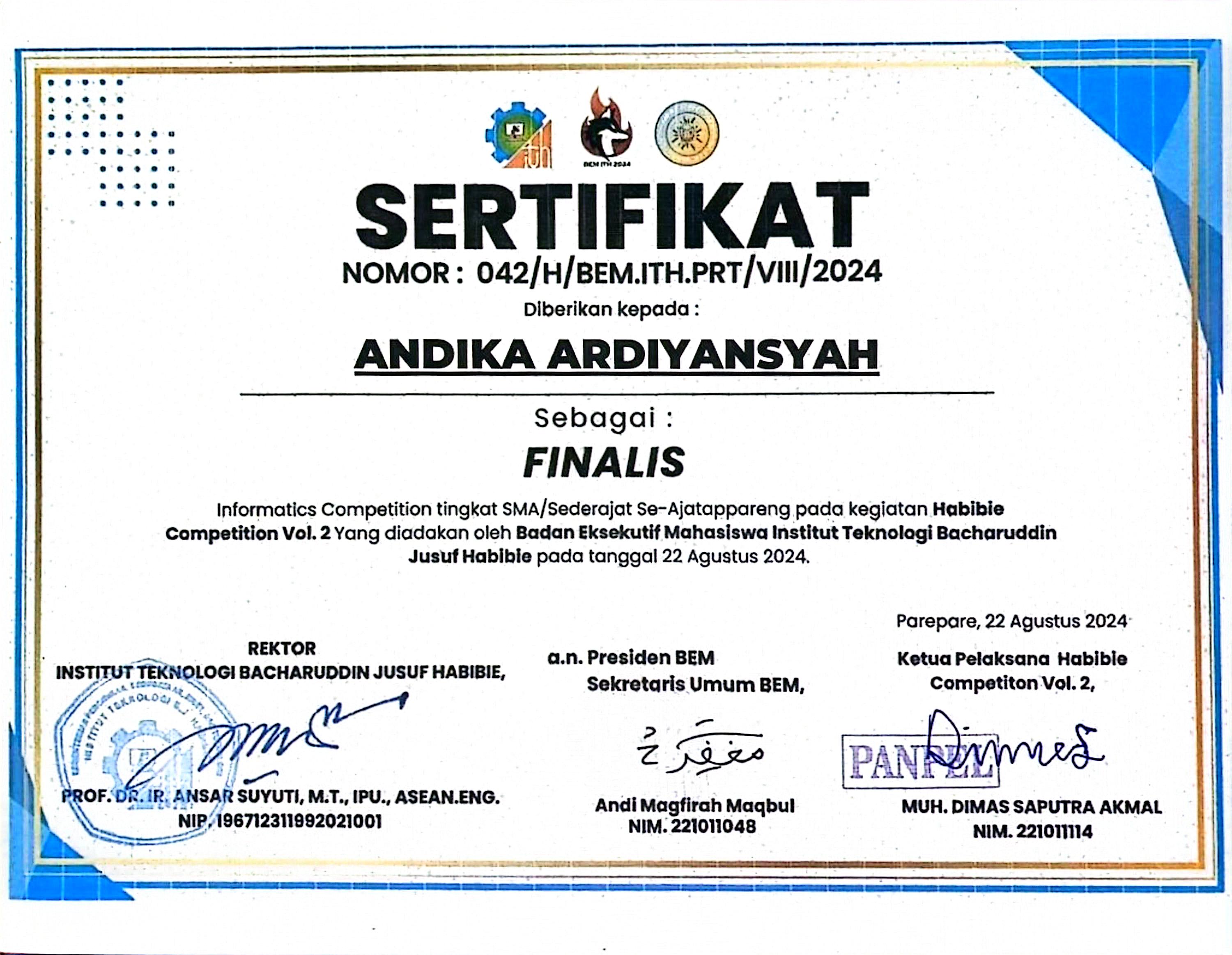 Deskripsi: Saya adalah seorang siswa dari SMKN 3 Pinrang yang memiliki kemampuan di dunia teknologi informasi, khususnya dalam Administrasi Sistem Jaringan. Saya memiliki kemampuan dalam mengonfigurasi infrastruktur server, manajemen jaringan, dan pemecahan masalah sistem yang kompleks, dan Berpengalaman dalam mengelola layanan server (Debian/Ubuntu/Cisco/Mikrotik) dan memastikan konektivitas jaringan tetap optimal